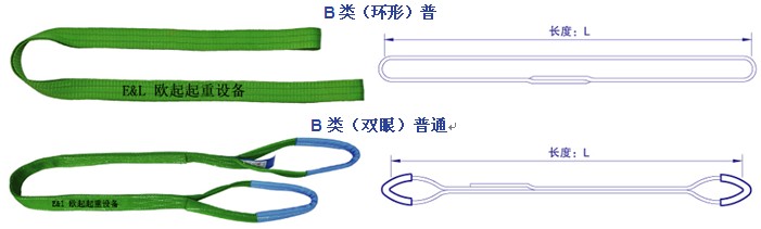 分類:根據(jù)加工工藝不同分為:圓環(huán)吊裝帶(簡(jiǎn)稱A類吊裝帶)和扁平吊裝帶(簡(jiǎn)稱B類吊裝帶)