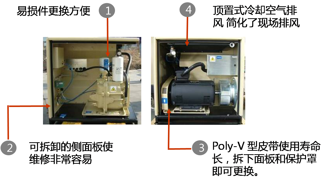 — 將易受高溫影響而損壞的電氣元件及油分離和過(guò)濾模塊置于冷室中,提高了機(jī)組的使用壽命
